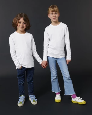 Laste T-särk sisseõmmeldud varrukatega ja õhukese topeltõmblusega.