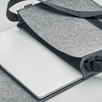 Taaskäideldud materjalist vildist sülearvutikott. Sobib 15-tollisele sülearvutile. Konksu ja aasaga sulguriga.